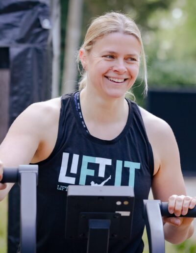 “Ik heb LiFt IT leren kennen door een vriendin. Geweldig om met haar te kunnen sporten in een kleine groep waar we de nodige ondersteuning krijgen van Dorien. Wat mij vooral heel erg blij maakt is het buiten sporten. Een volledig uur frisse lucht, ruimte, het zonnetje, bomen, geweldige muziek.. Ondanks de pittige workouts kom ik op deze plek enorm tot rust.”